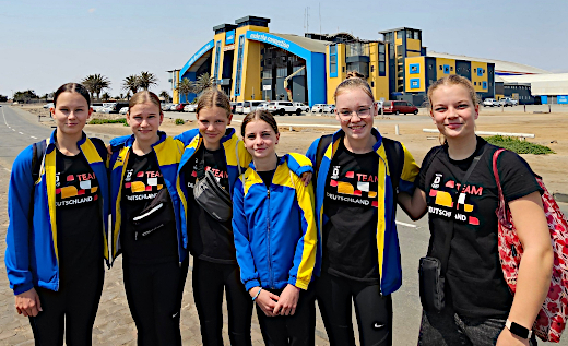 "Wir waren fast 24 Stunden unterwegs. Es war ein langer Flug. Jetzt freue ich mich auf ein paar spannende Tage, viele neue Eindrücke und tolle Gespräche mit den Sportlern und den Menschen in Swakopmund", sagte Vize-Sachsenmeisterin Emma Köckeritz.