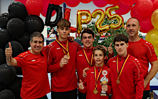 Wenn ein Olympiasieger und Ex-Bundestrainer Waleri BELENKI (links außen) so strahlt, kann es nur der Sieg sein: Mit Trainerkollegen Jörg SCHWAIGER (rechts außen) führte er seine jungen Schwaben zum Pokalerfolg 2025!