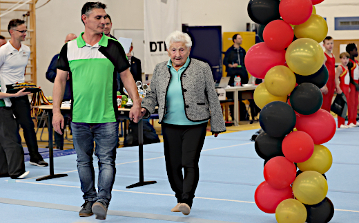 Wenige Tage vor ihrem 100. Geburtstag (!) besuchte Johanna QUAAS den Wettkampf der jüngsten Turntalente Deutschlands, die im Schnitt alle 90 Jahre jünger sind, als die noch immer "älteste Wettkampfturnerin der Welt":