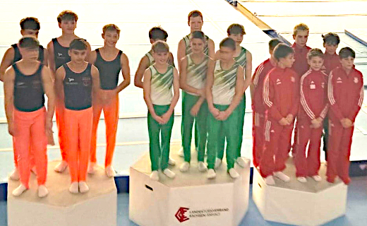 Da machten es der Berliner Turner James Zinzen und Erik Böhm - betreut von Michael Krüger beim SV Halle mit über 60 Punkten dem Einzelsieger Louis Kasper doch ziemlich schwer, sich aber letztlich als bester Einzelkämpfer im Mannschaftsdienst mit 63,15 Punkten ziemlich klar durchsetzen konnte. Louis war im vorigen Jahr als Hessischer Landesmeister bei Trainer Hans-Rüdiger Matzner in Kassel bestens vorbereitet, dann nach Niedersachsen gewechselt und wird hier nun von Flavius Koczi erfolgreich weiterentwickelt.