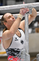 (* Foto, rechts: Wolfgang Werner am Reck bei den > Deutschen Senioren-Meisterschaften 2018 in Essen - Deutscher AK-Meister M55 - jetzt Ü60! →)